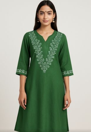 Elegant Green Chanderi Chikankari Long Kurta Product Description: