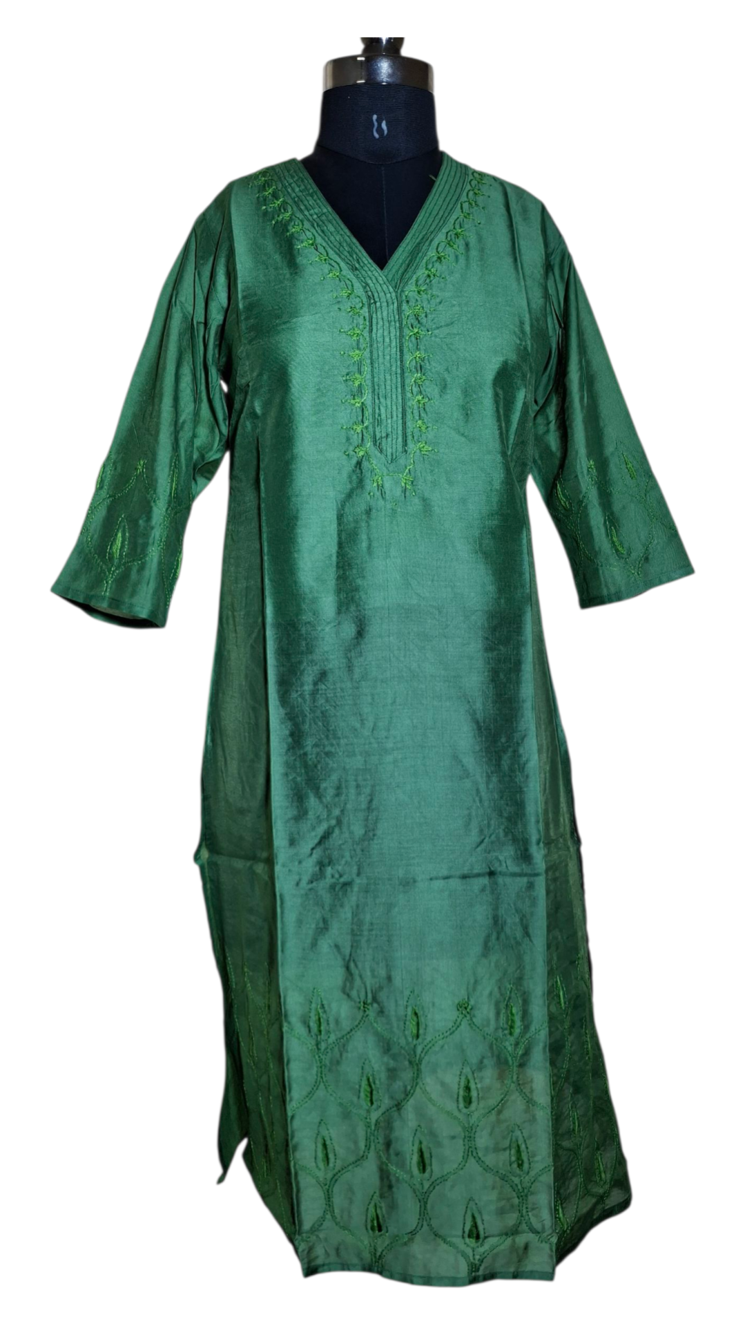 Elegant Green Chanderi Chikankari Long Kurta Product Description: